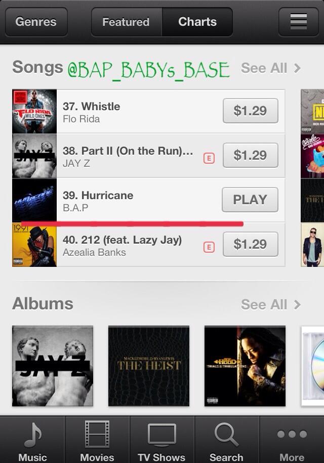 [CHART] iTunes Hip-Hop/Rap chart: #39 B.A.P - Hurricane