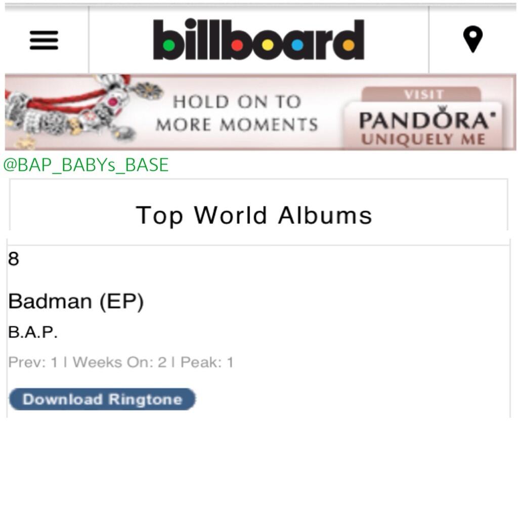 [INFO] B.A.P's BADMAN #8 on this weeks Billboard's Top World Albums