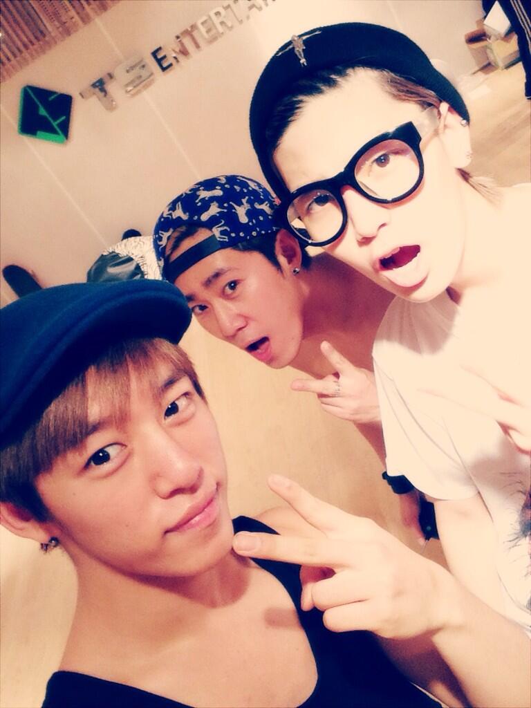 "Practice room filled with hot heat~!! Together with the cool Jungseobie hyung and Zelo who is as white as paper ^^!"